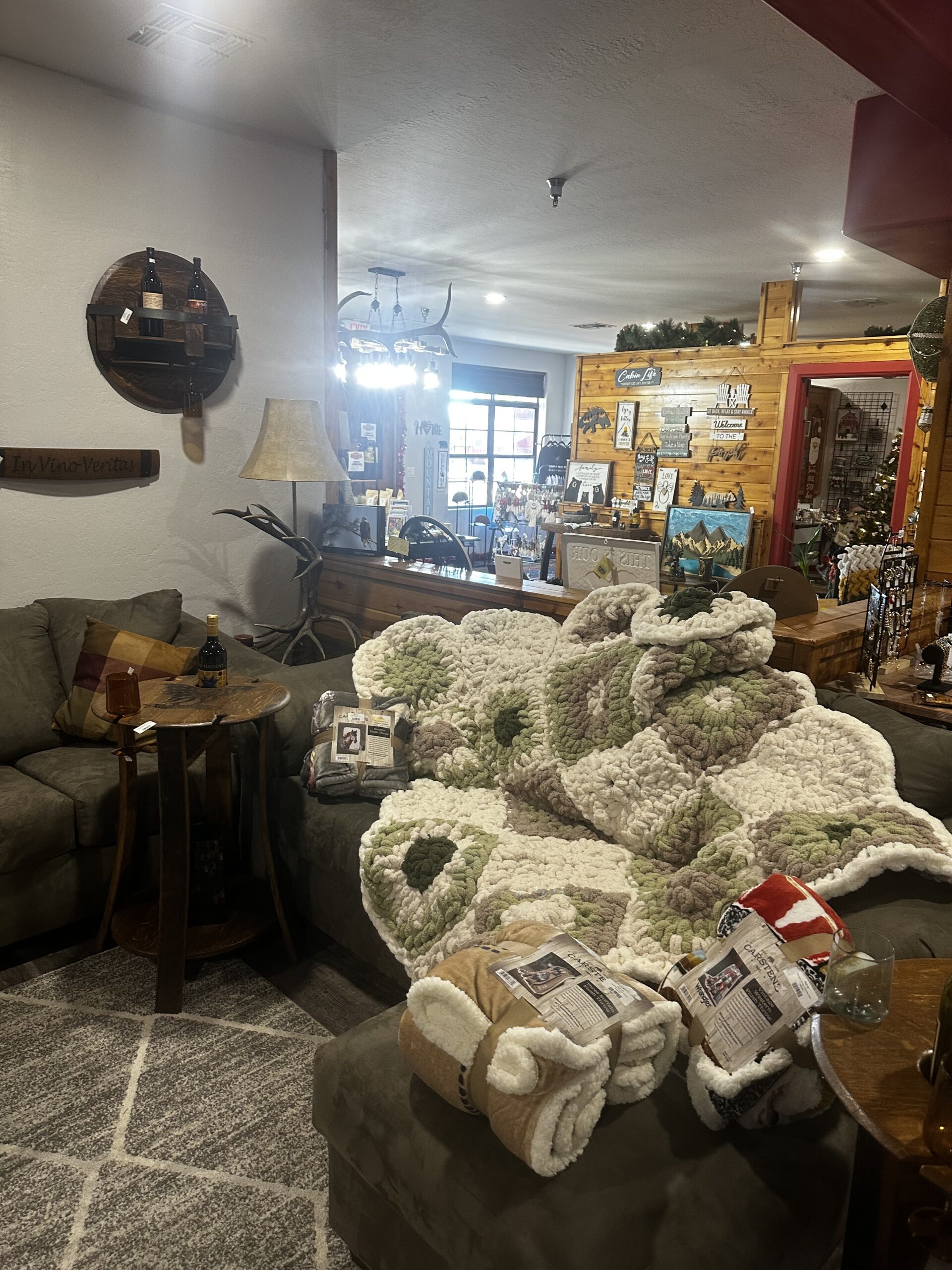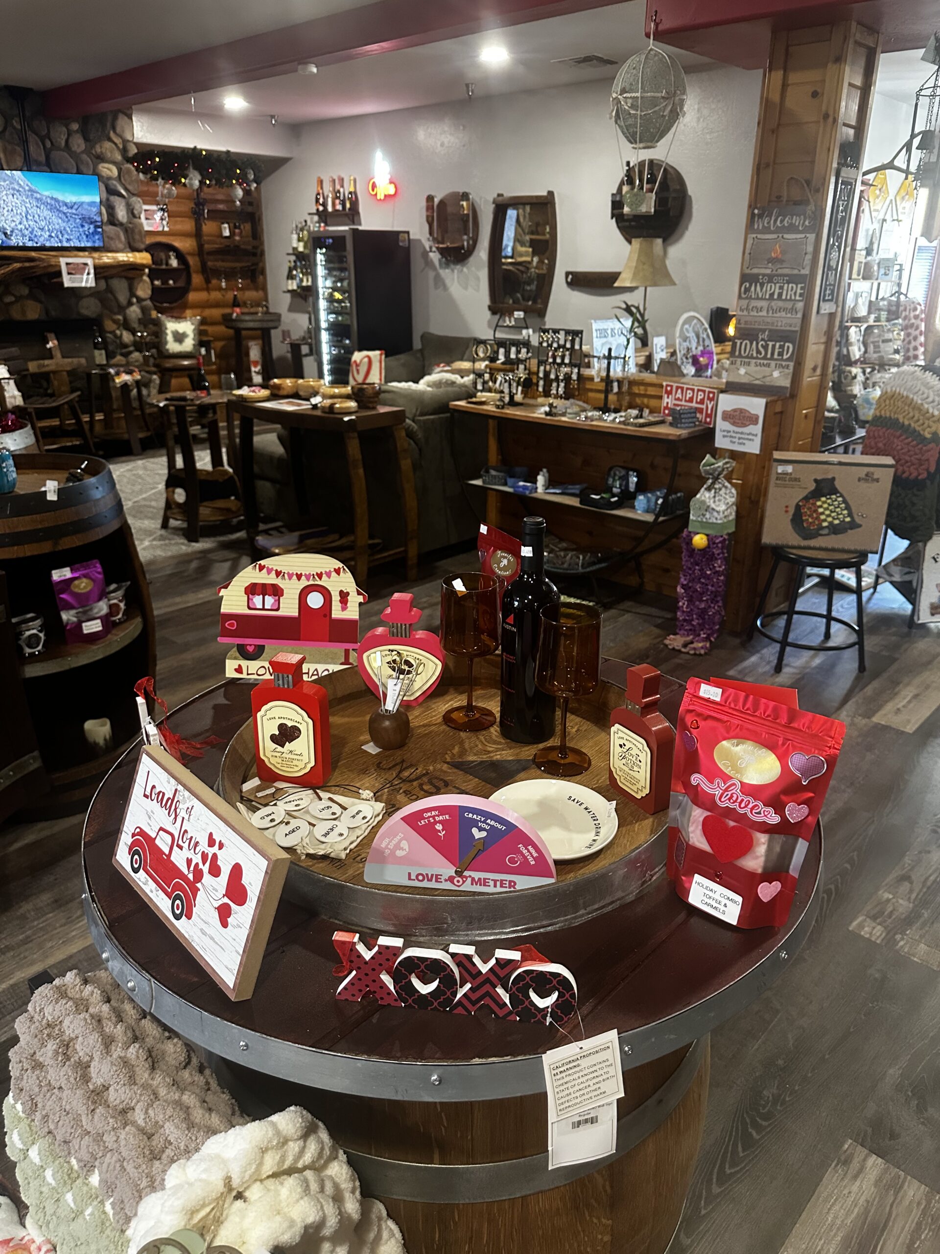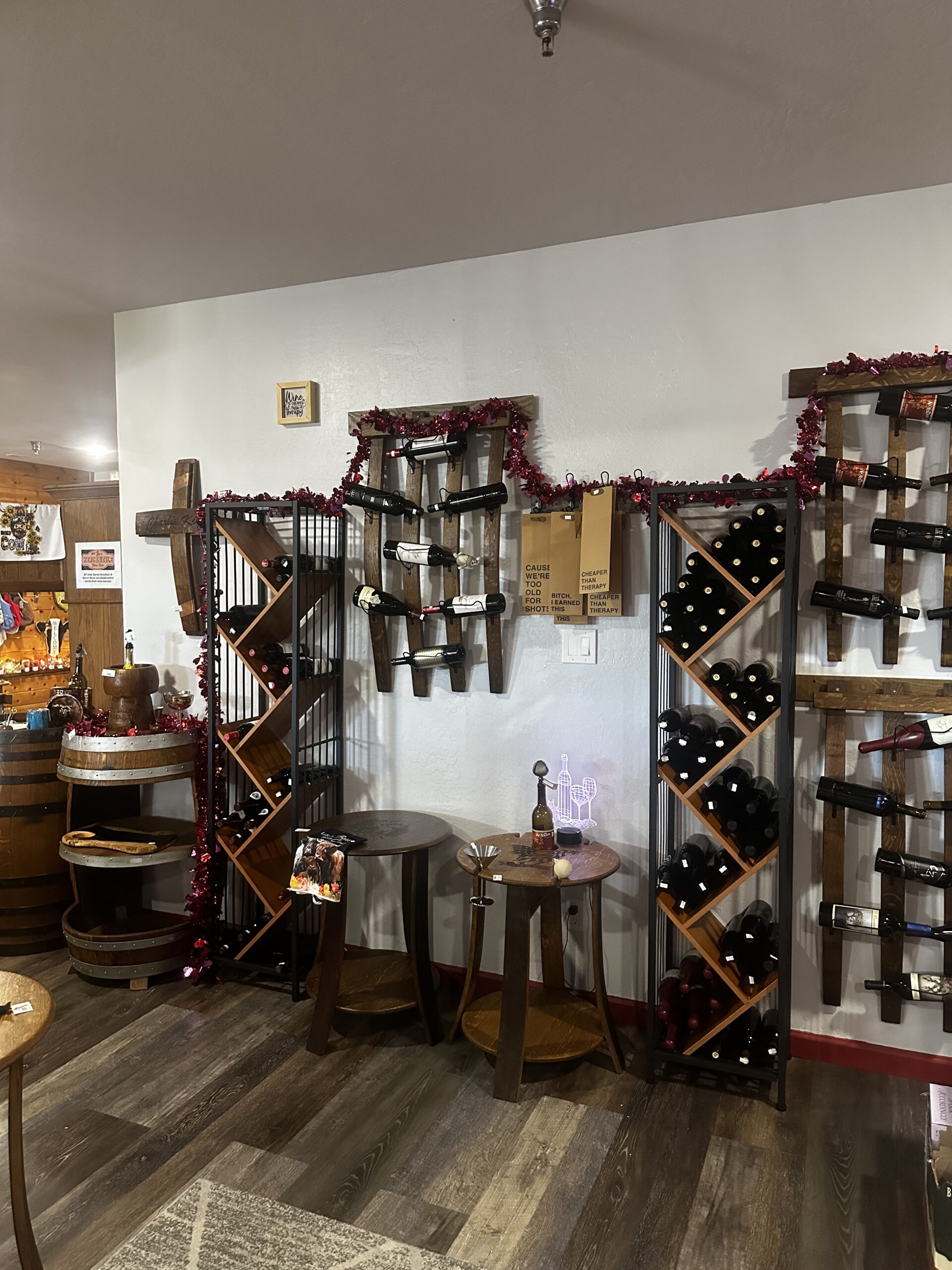 We receive new and unique gifts/decor on a weekly basis. We offer an assortment of Arizona wine along with fine wine. Our rustic/cabin decor is handcrafted by local artists along with our wine barrel furniture and decor, which is strictly made from wine barrels. Throughout the year, we also host quarterly wine tastings featuring Arizona wineries, giving guests the opportunity to discover new favorites and connect with local winemakers.